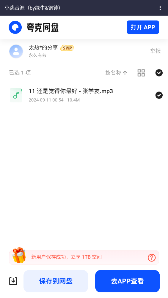 还可以进入小跳音源,搜索自己感兴趣的歌曲网盘地址,下载该音乐