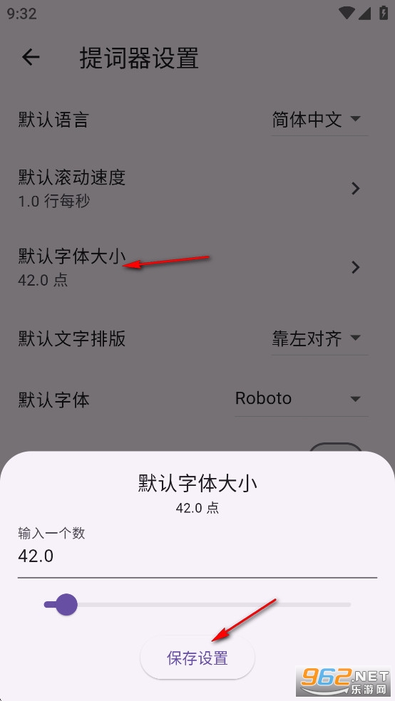 点击【默认字体大小】调节大小后点击【保存设置】;