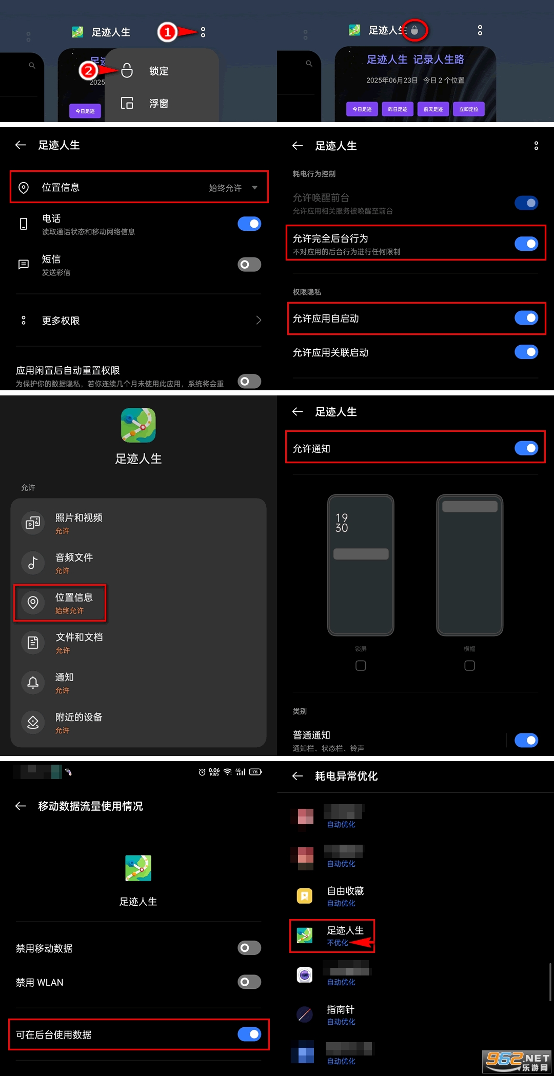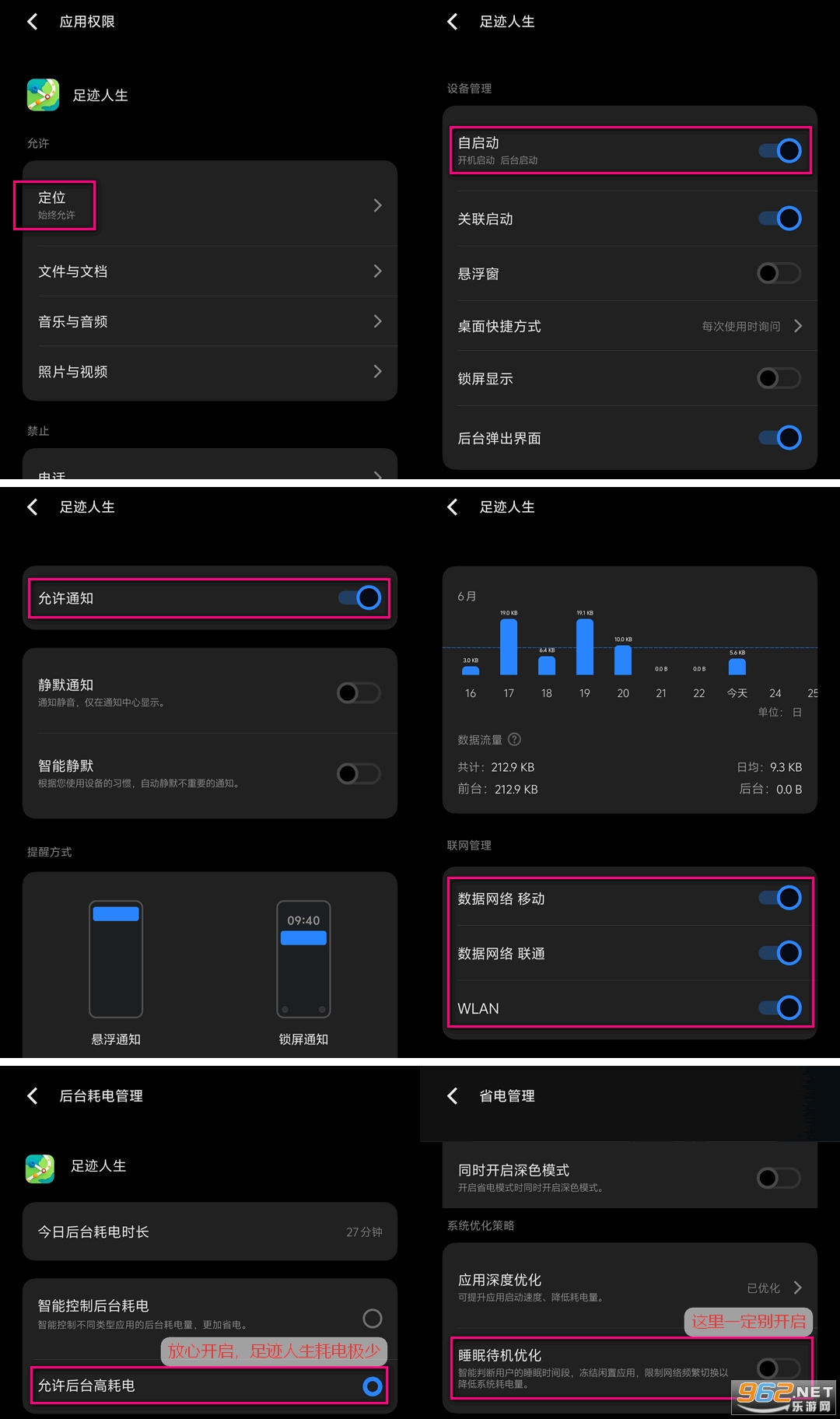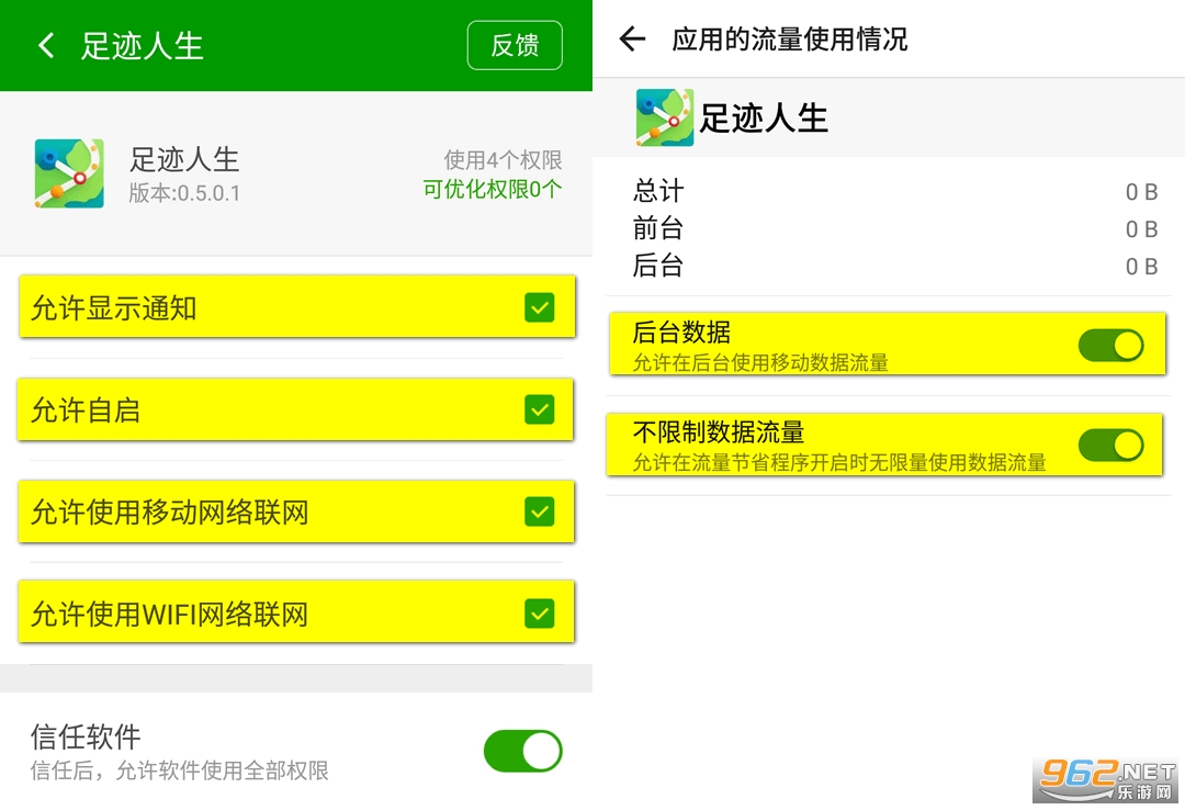 提示:后台耗电 和 通知权限、联网权限 也非常重要,请按图索骥。