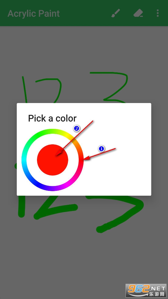 在圆环上选择一个颜色后点击中心的颜色即可选中颜色
