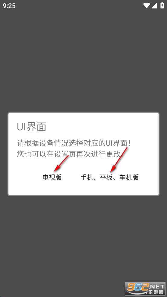 进入软件会有着一个选项,如果是电视版就选择电视版,如果是手机等就选择另一个;
