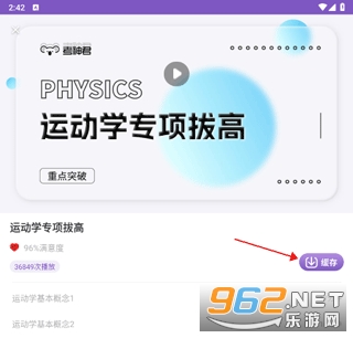 2、进入课程界面后,点击“缓存”,即可下载。