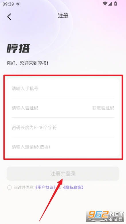 2、填写相关信息,点注册并登录就能进入软件了
