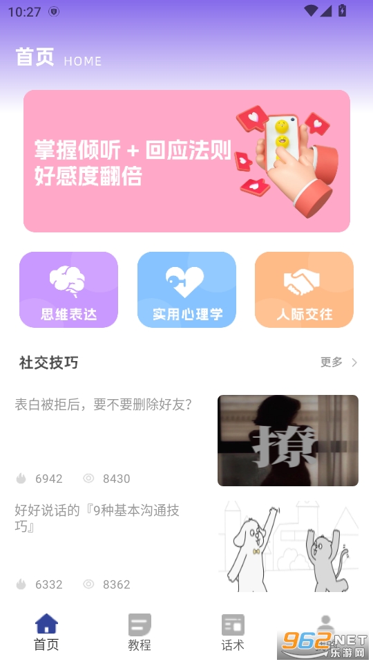 模块整合科学:将思维表达、实用心理学等四大核心模块巧妙融合于首页,形成完整知识体系,让用户系统学习,循序渐进提升沟通与应变能力。