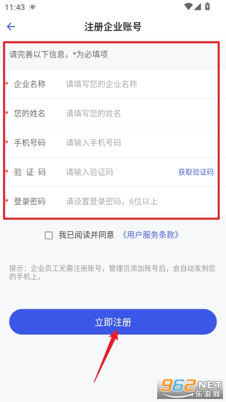3、填写相关信息点立即注册,然后返回登录即可
