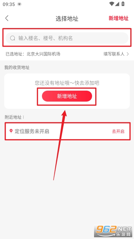 2、可以用通过搜索、收货地址、附近地址三种方式定位