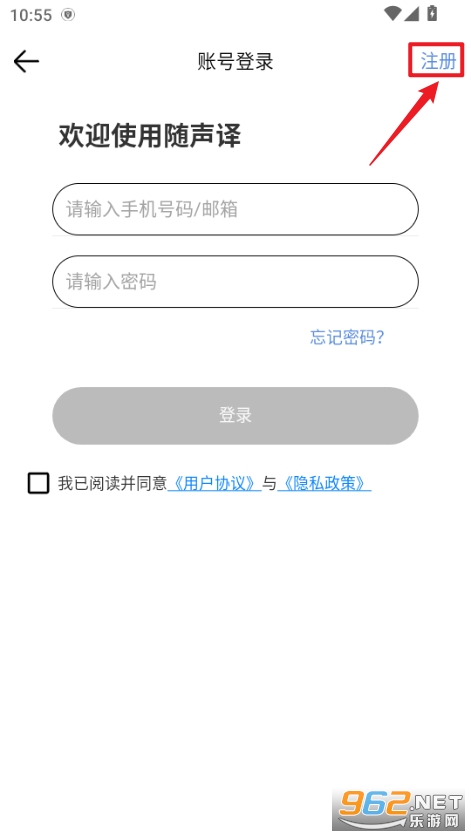 2、点击右上角注册