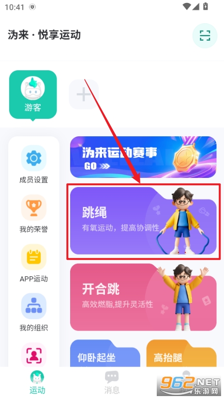 1、进入软件后,选择运动项目,如跳绳