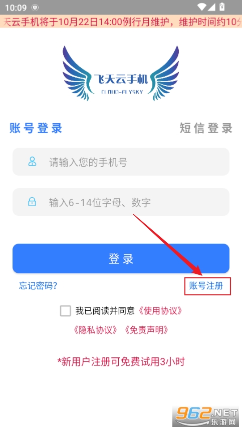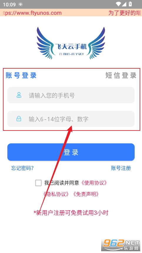 1、进入软件后,可以看到有账号,短信两种登录方式