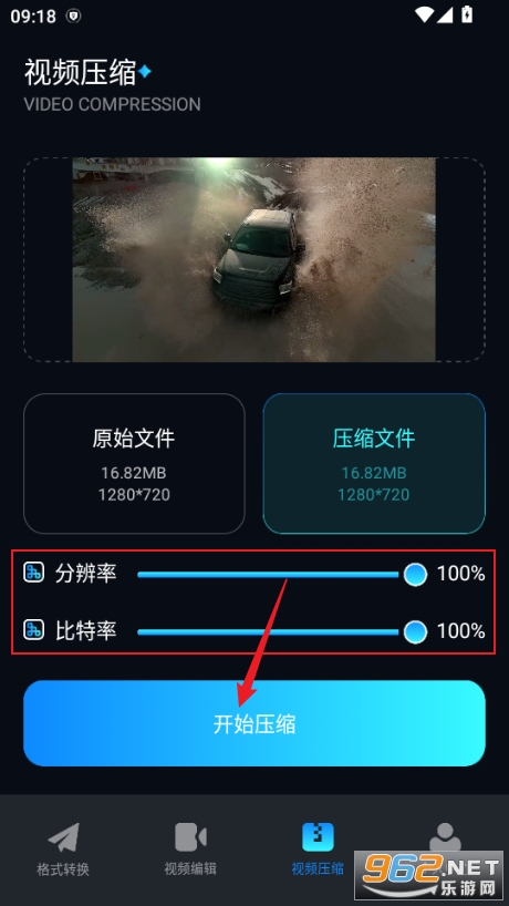 3、调整分辨率和比特率,点击开始压缩,等待压缩完成即可
