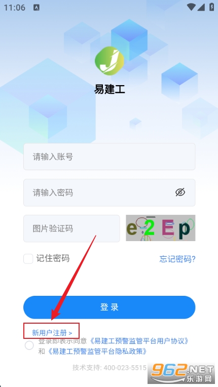 2、点击下方新用户注册