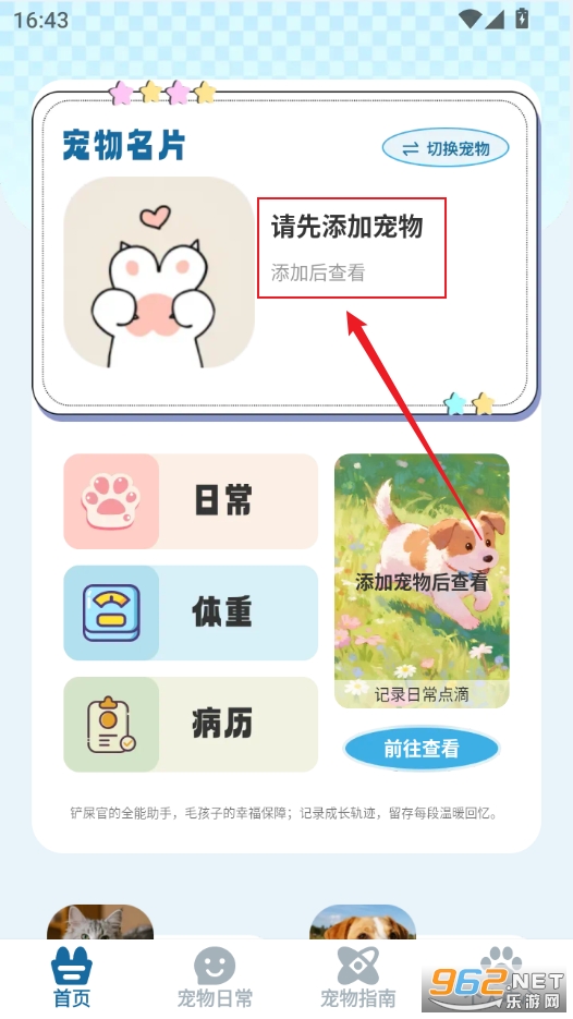 操作便捷高效:界面简洁,操作流程清晰,新手也能快速上手,轻松管理宠物各项事务。