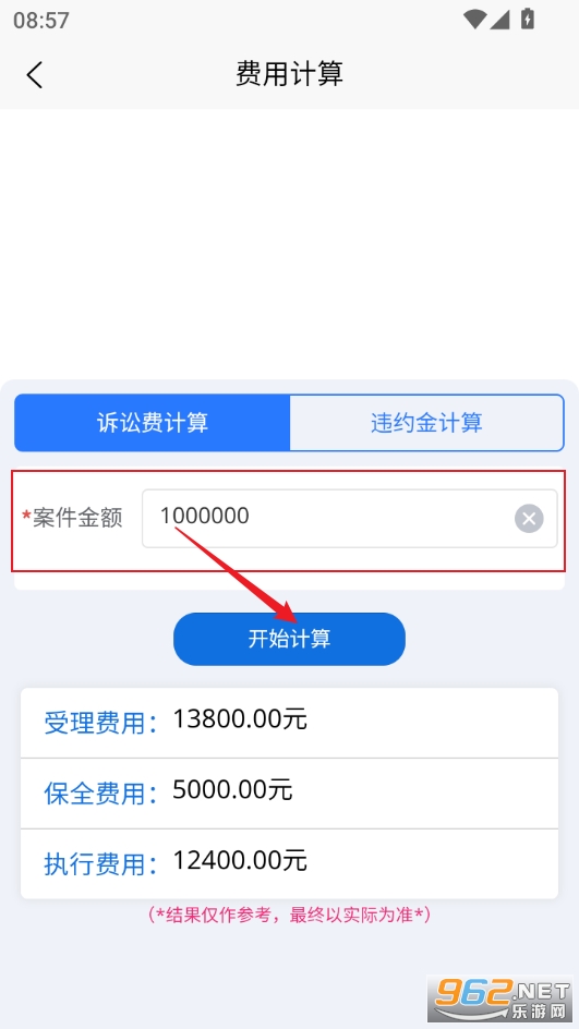 2、输入按键金额点开始计算,可以看到下方列出了相关费用