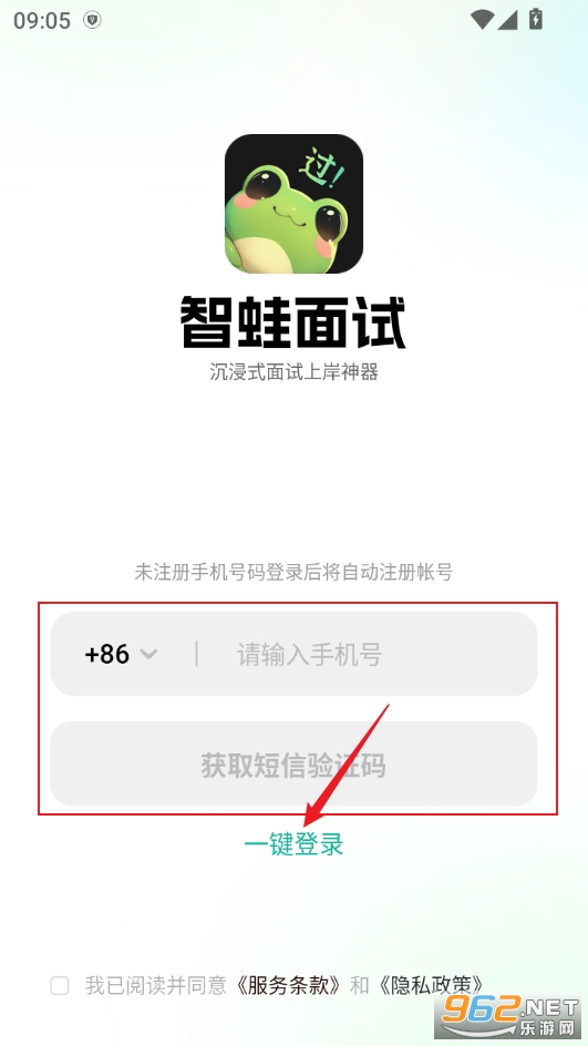 首次使用软件,输入手机号验证码,点击一键登录即可