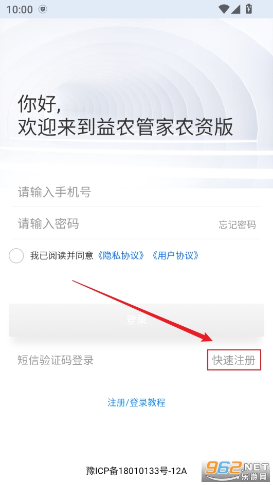 1、进入登录界面点击快速注册