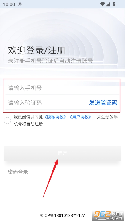 2、输入手机号验证码注册登录即可