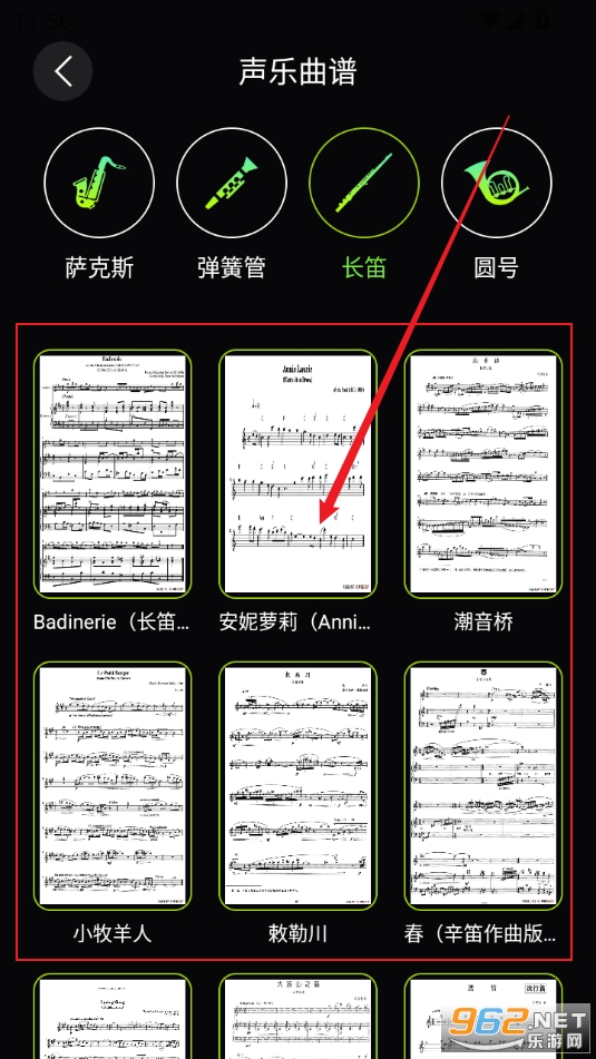 2、点击喜欢的乐曲可以看到各种曲谱,打开曲谱就能进行学习了