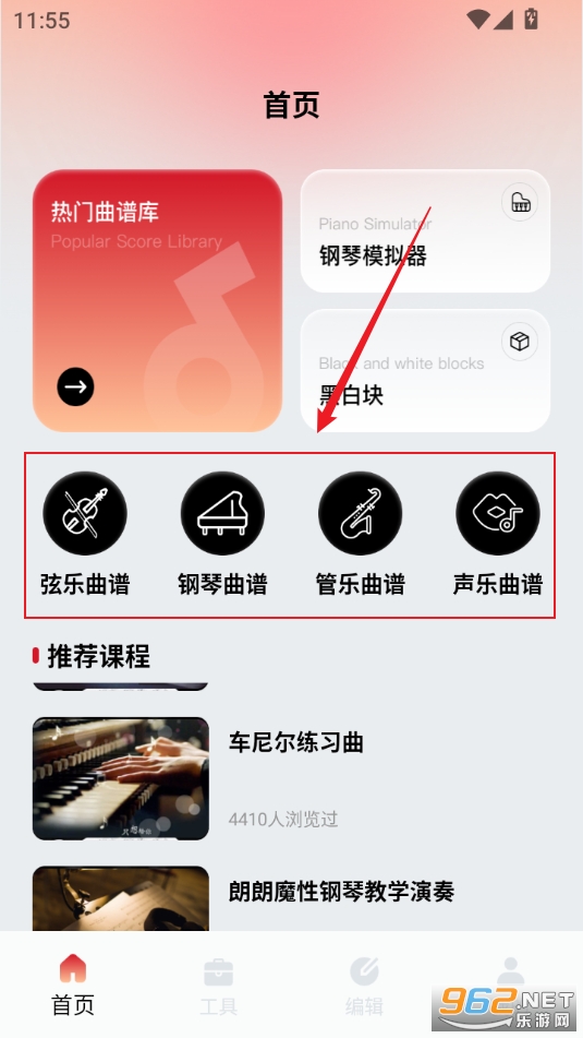 1、进入软件可以看到不同乐曲分类