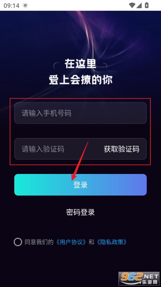 1、进入软件后,可以直接输入手机号验证码登录,首次登录自动注册