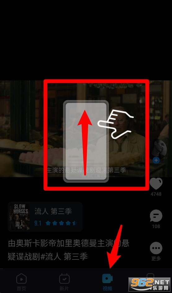 3、在“视频”栏目中可上下滑动切换短视频内容,操作方式通过动画手势提示一目了然。