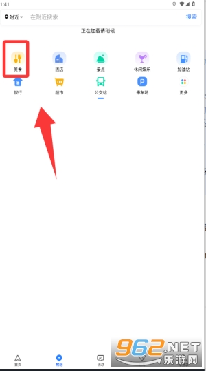 3、搜索附近美食或住宿,软件会按距离显示推荐列表,帮你快速找到适合休息或吃饭的地方。
