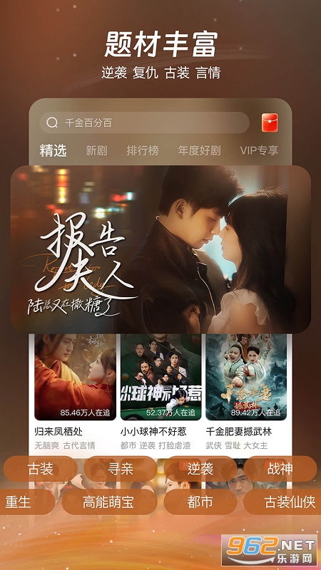 题材丰富多样:涵盖都市甜宠、悬疑反转等全网热门,满足多元追剧需求。
