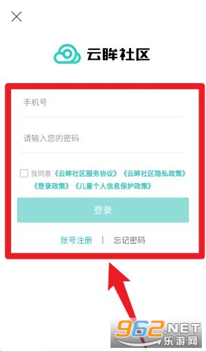 1、首次进入云眸社区App请填写手机号和密码进行登录,未注册用户可点击下方“账号注册”完成快速开通。