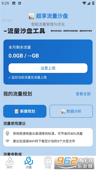 4、点击下方沙盘工具,还可以设置流量上限,新建流量的使用规划等。