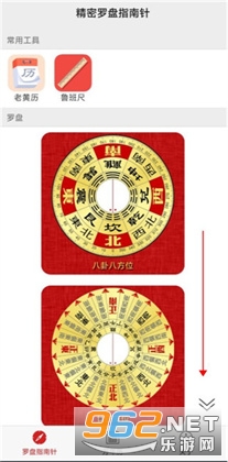 智能工具生态链:集成万年历、老黄历、水平尺、鲁班尺等12种实用工具,数据与罗盘方位联动,例如择日时自动匹配吉时方位,形成闭环决策系统。