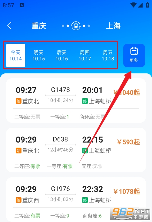 4、出现车票信息后,可以点击【更多】根据自己的出行计划选择查看某一日的车票信息,