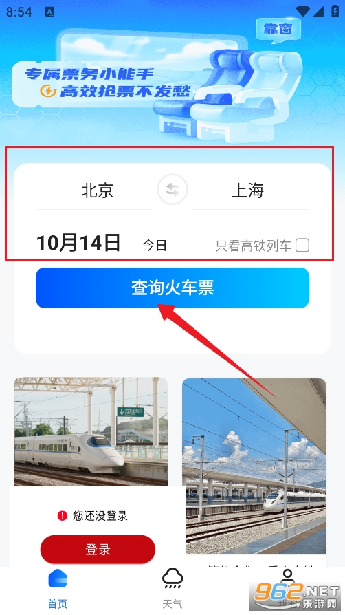 1、下载安装好高铁订票助手APP,打开进入到首页。