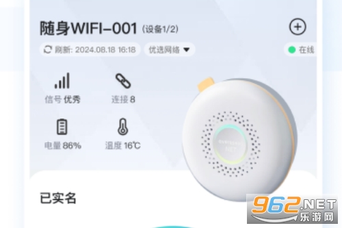 1、打开宝技智联移动wifi,登录账号后自动识别绑定的设备,首页会显示当前网络状态、信号强度和剩余流量信息。