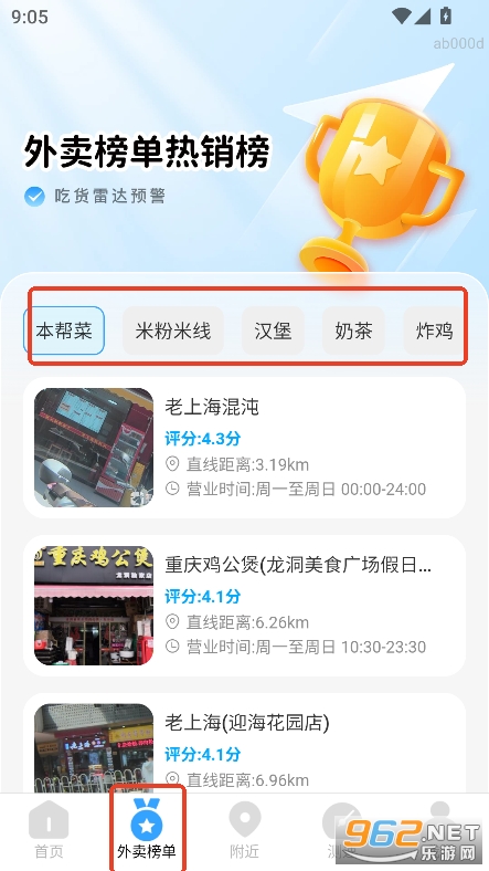 2,可查看附近的外卖排行榜单