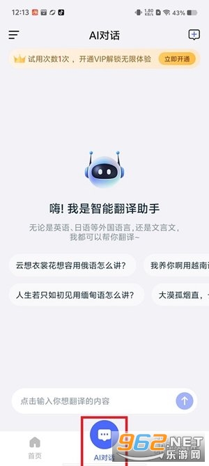 AI智能对话辅助:除基础翻译外,具备写作辅助、文本纠错、内容润色等AI智能对话功能。能帮用户打磨文案、优化表达,让语言更精准、地道,提升沟通与创作质量。