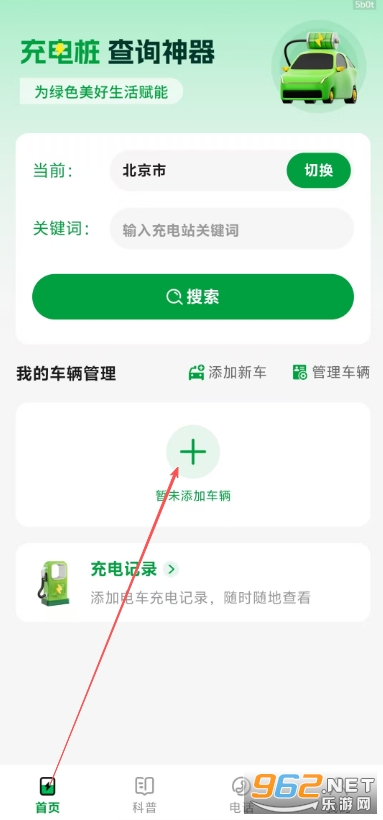 1.用户进入软件之后可以直接在首页中点击添加车辆即可进行下一步操作。