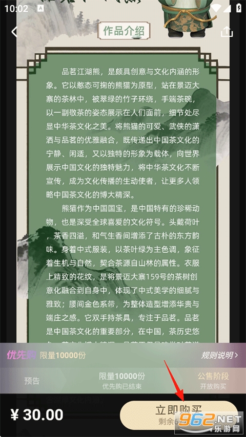 2、浏览该藏品的详细信息确认无误后点击立即购买;