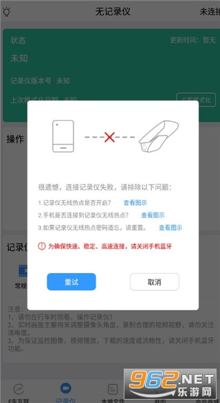 3、如果弹出这样的提示框,说明你的设备没有连接记录仪,连接完毕后再次点击即可查看回放