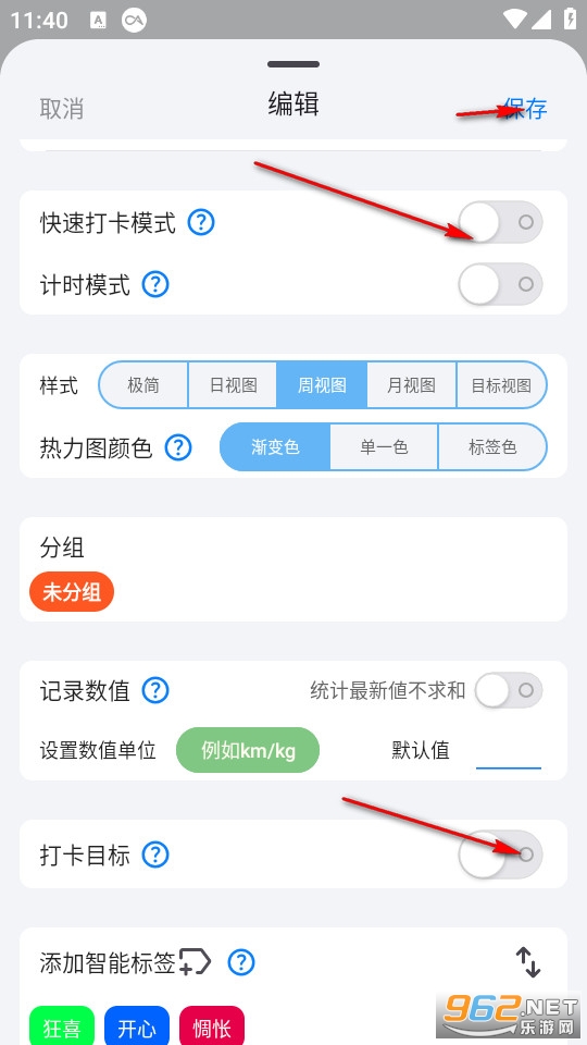 选择其中一个模块以后我们就可以进行习惯描述、打卡提醒,根据自己的喜好和软件的使用习惯进行修改随后进行保存。