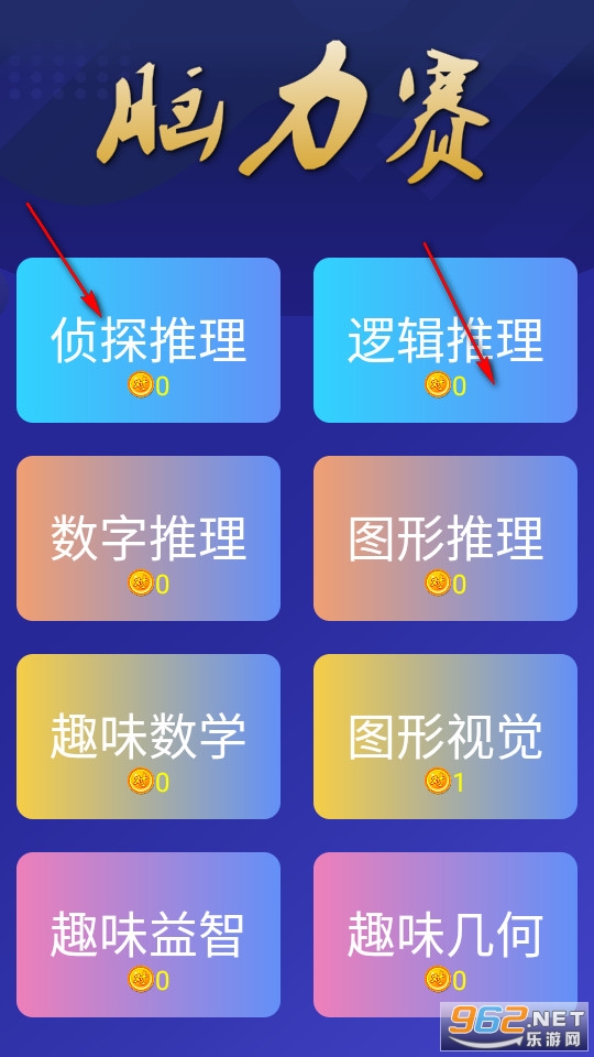 进入脑力赛,我们能够选择多种题目类型,用户可以选择任意一个自己感兴趣的选择答题。