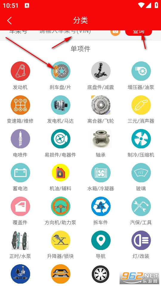 然后选择我们的单项件,如果你不知道需要采购什么东西,可以将需求物品的车架号输入上方进行查询。