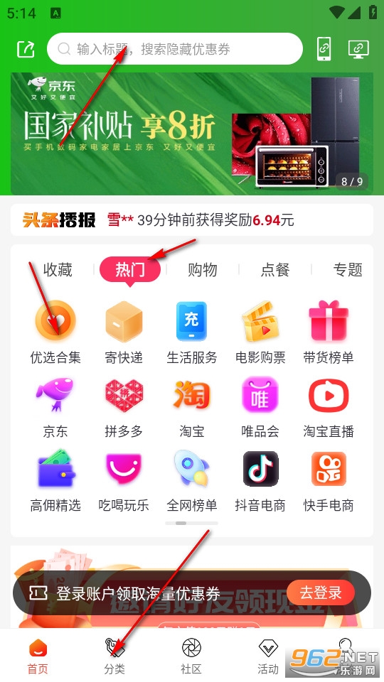 我们可以随意点入一个电商平台的图标进入该电商平台的主题界面,我们可以在该主页中找到该平台非常多的优惠活动。