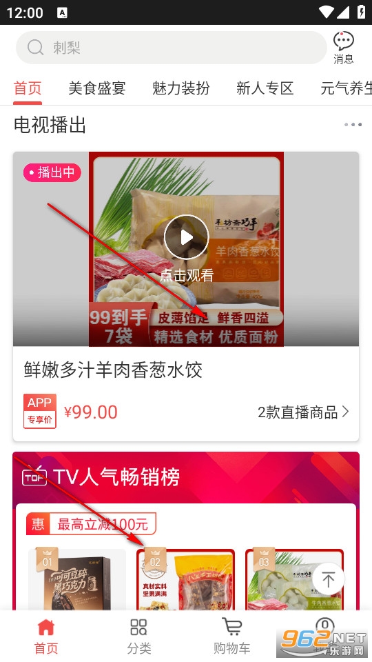 我们能够在以下首页的位置中看到目前电视轮播广告商品,轮播的广告商品用户能够在该软件中直接购买,软件内也会列举电视轮播的热销商品。