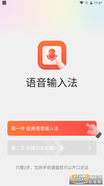1、首先我们打开app,想要手机键盘开口说话,只需要两步,点击第一步启用语音输入法;