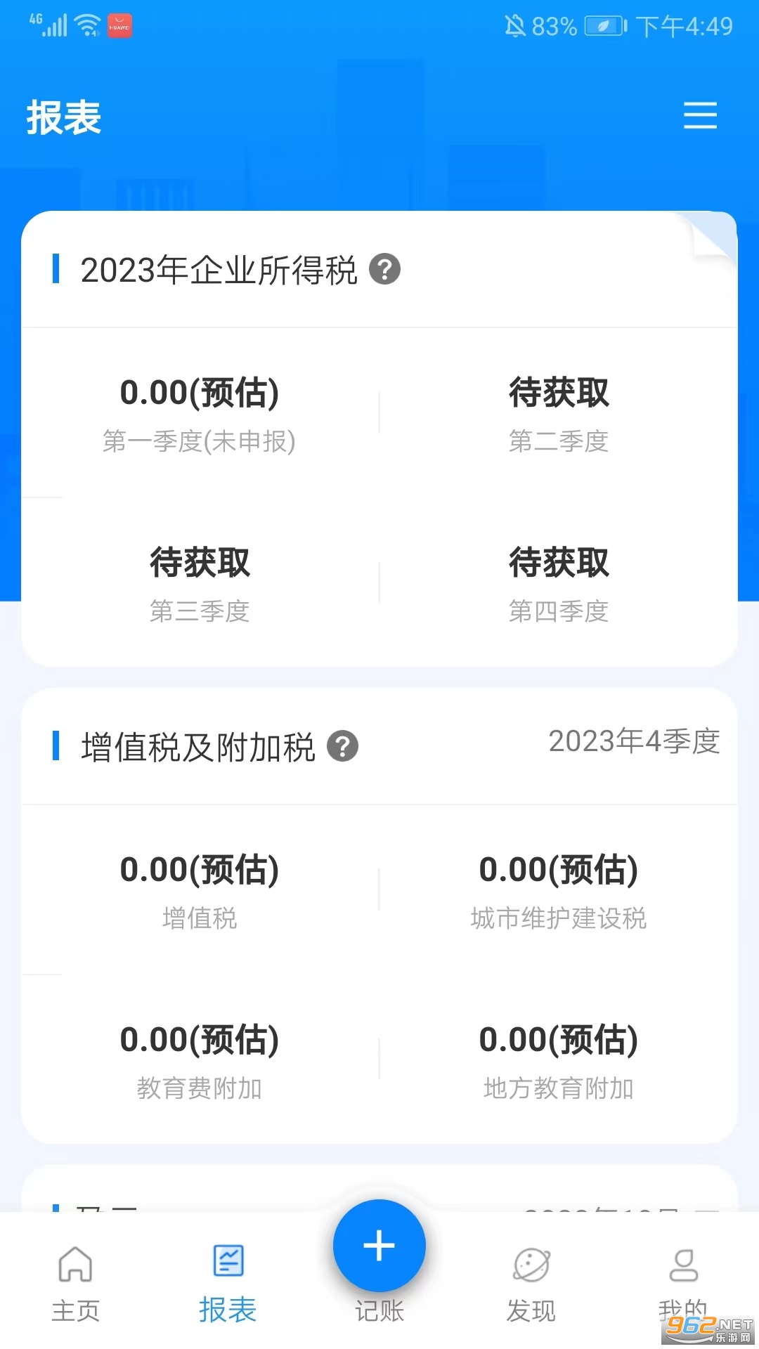 4、进入报表界面,可以查看当前企业每个季度的所得税、增值税、附加税等分类,