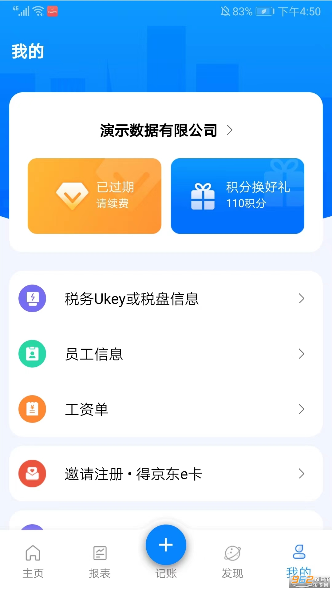 7、进入我的界面,可以查看税务Ukey或税盘信息、员工信息、工资单等内容,
