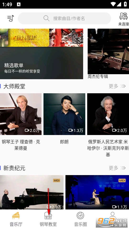 点击软件进入软件首页,我们在下方找到钢琴教室。
