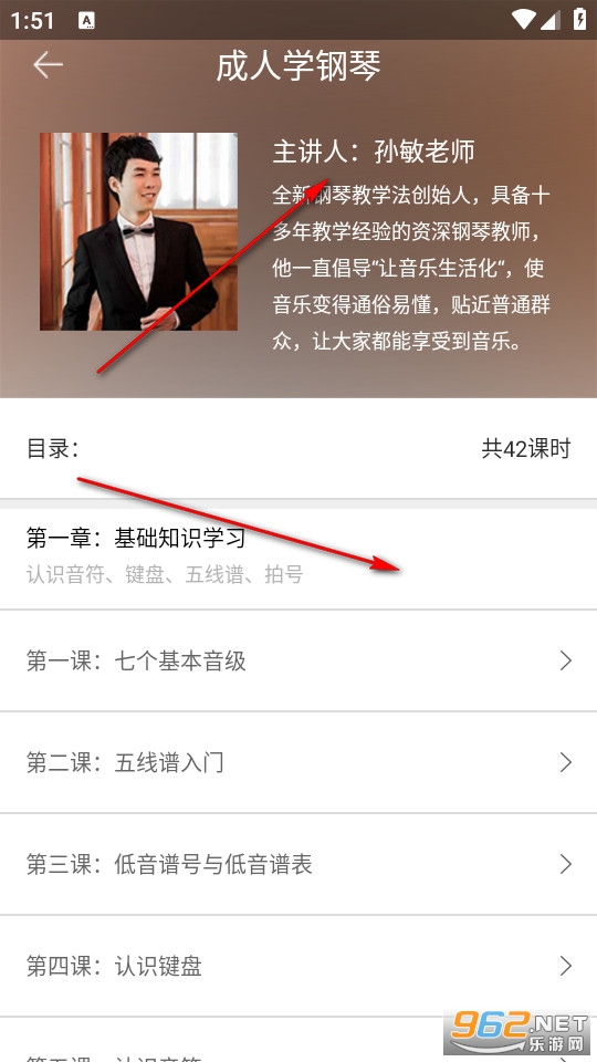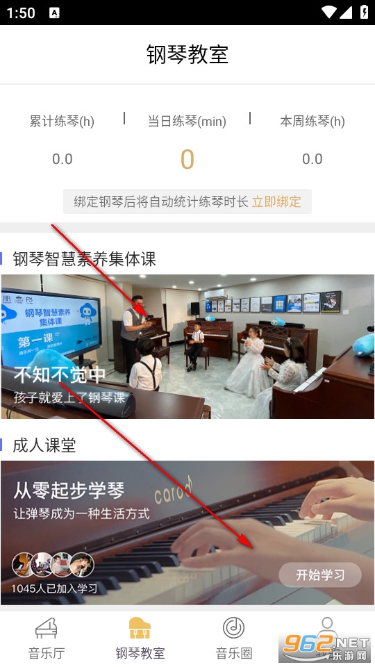 然后我们在钢琴教室页面找到能够直接开始学习的在线学琴课程。