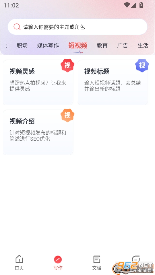 3.在软件首页界面找到底部菜单栏“写作”功能按键点击进入下一步