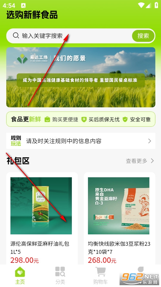 点击软件进入首页,在上方搜索自己所需的产品,也能够在下方直接浏览寻找所需商品。