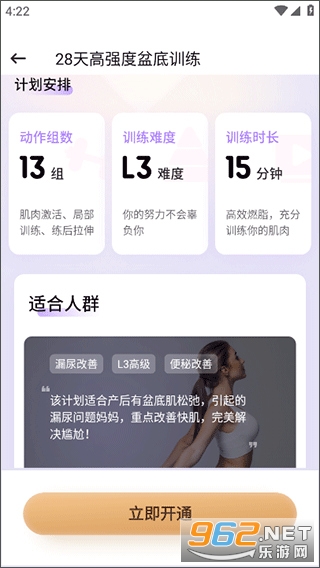 专属定制计划:依据不同人群需求,从产褥期到理想修复期,精心设计多样化训练计划,真人计划跟练,满足各阶段盆底肌修复需求,针对性强,效果显著。